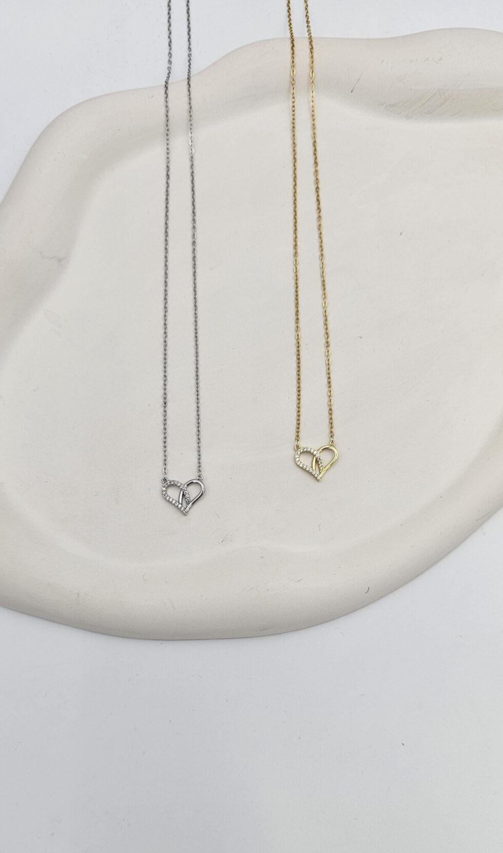 Κολιέ καρδιά με στρας ανοξείδωτο ατσάλι επιχρυσωμένο και επιπλατινωμένο k120