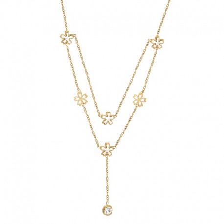 Κολιέ διπλό με λουλούδια και στρας ανοξείδωτο ατσάλι επιχρυσωμένο k132
