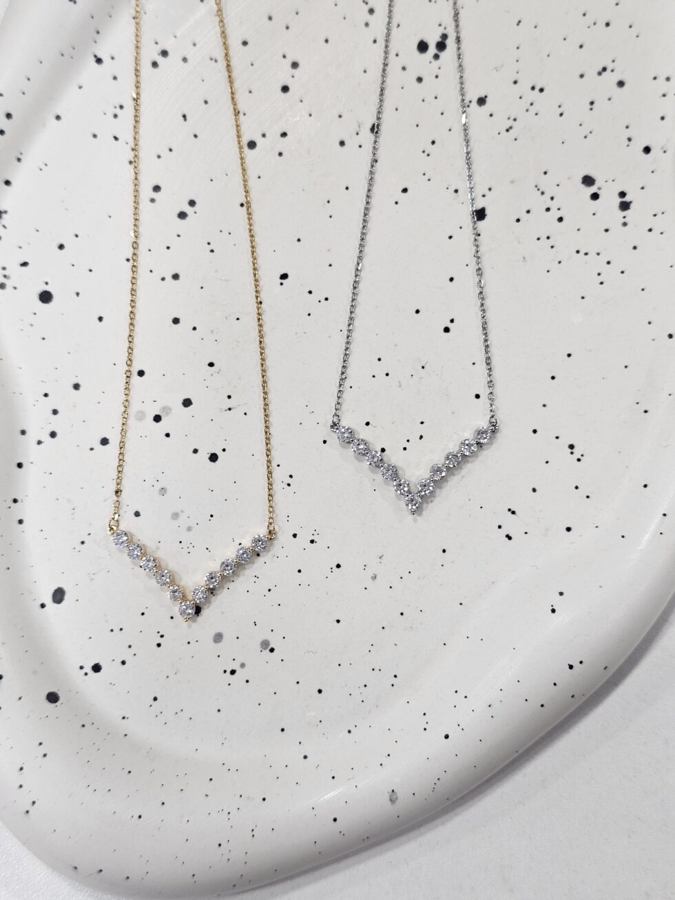 Κολιέ V ανοξείδωτο ατσάλι με πέτρες ζιργκόν επιπλατινωμένο και επιχρυσωμένο k51