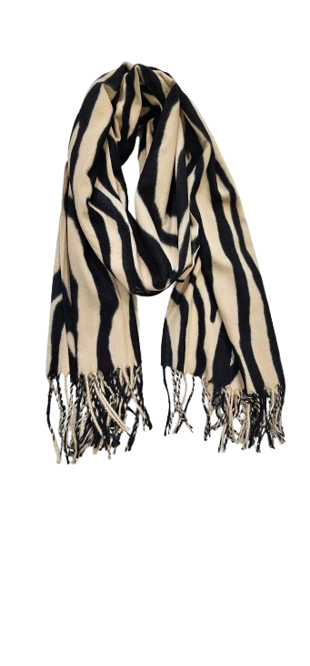 Φουλάρι-πασμίνα ζεβρέ με κρόσσια 80×190εκ
