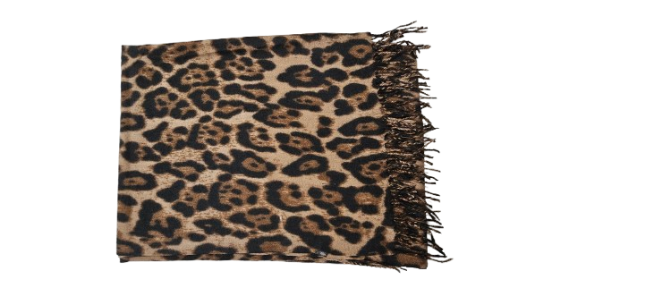 Φουλάρι-πασμίνα λεοπάρ με κρόσσια 80×190εκ f05