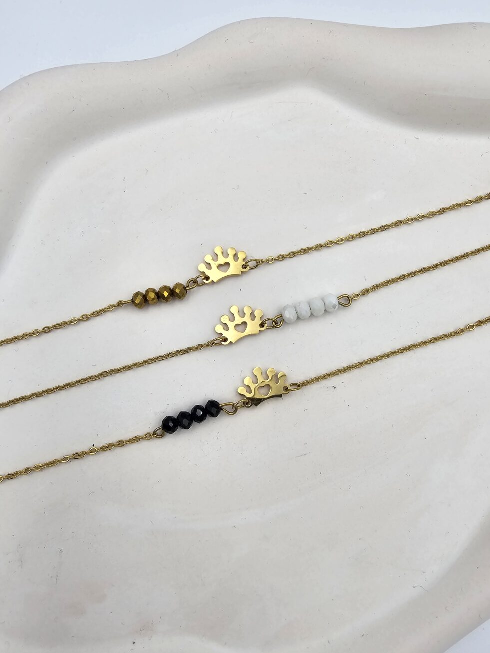 Βραχιόλι ανοξείδωτο ατσάλι κορώνα με κρύσταλλα επιχρυσωμένο v76