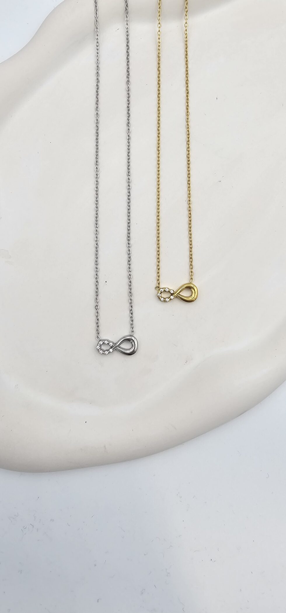 Κολιέ άπειρο ανοξείδωτο ατσάλι με στρας επιχρυσωμένο και επιπλατινωμένο k104