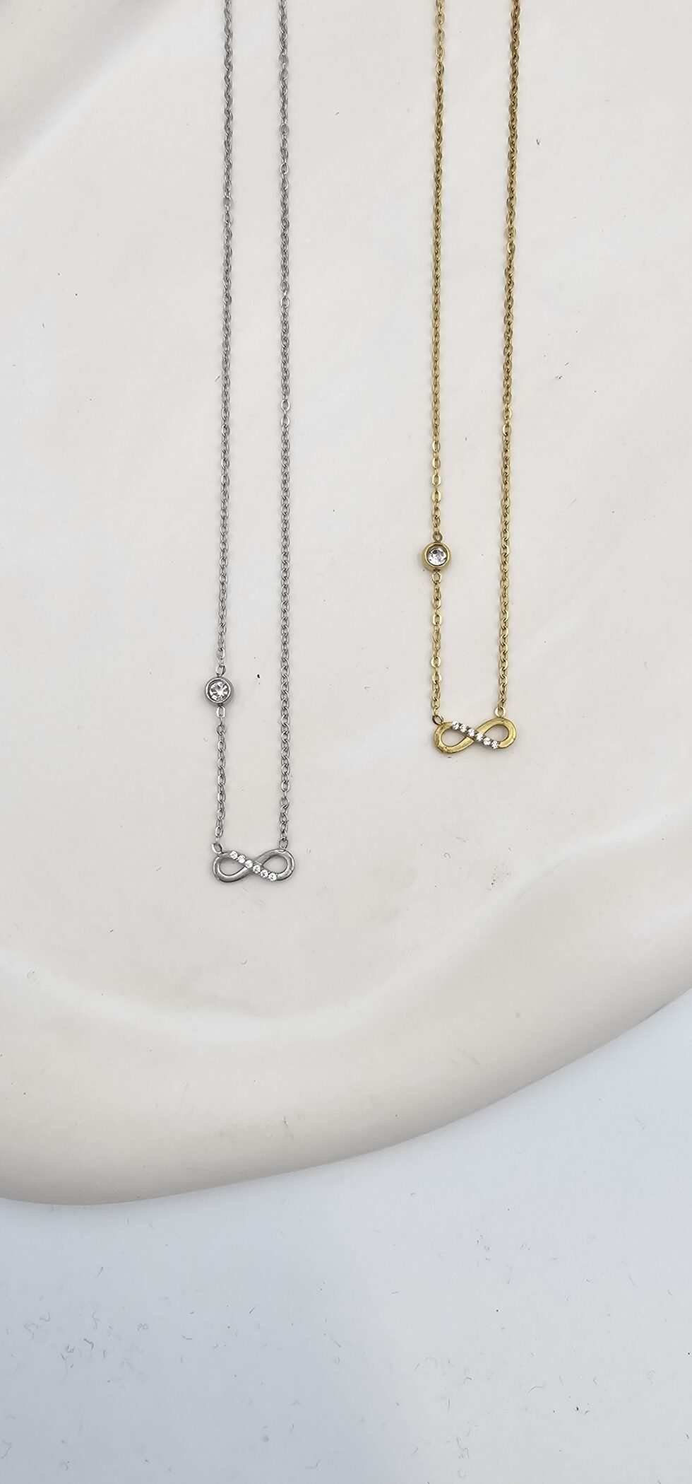 Κολιέ άπειρο ανοξείδωτο ατσάλι με στρας και πέτρα επιχρυσωμένο και επιπλατινωμένο k105