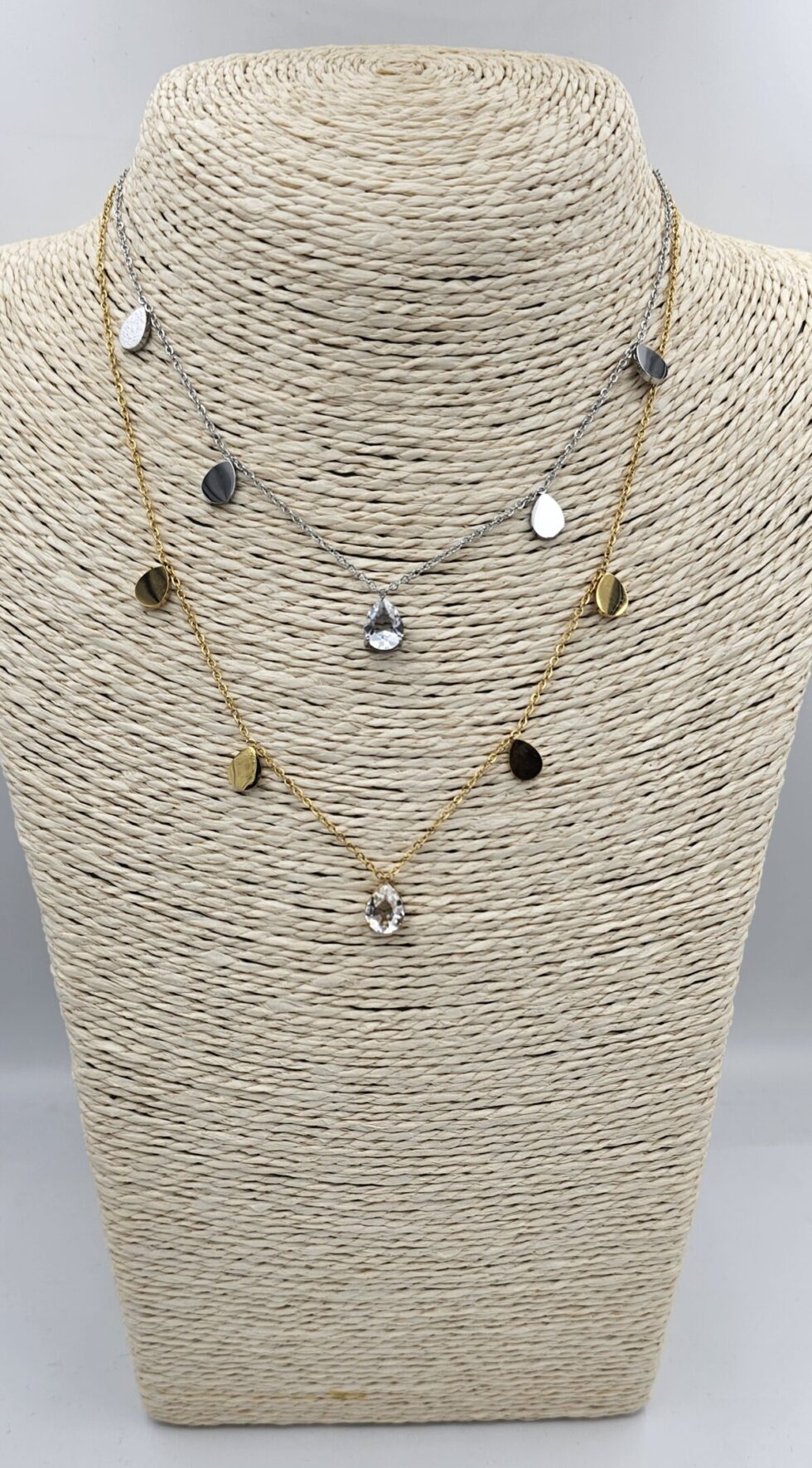 Κολιέ σταγόνες και πέτρα ζιργκόν ανοξείδωτο ατσάλι επιχρυσωμένο και επιπλατινωμένο k117