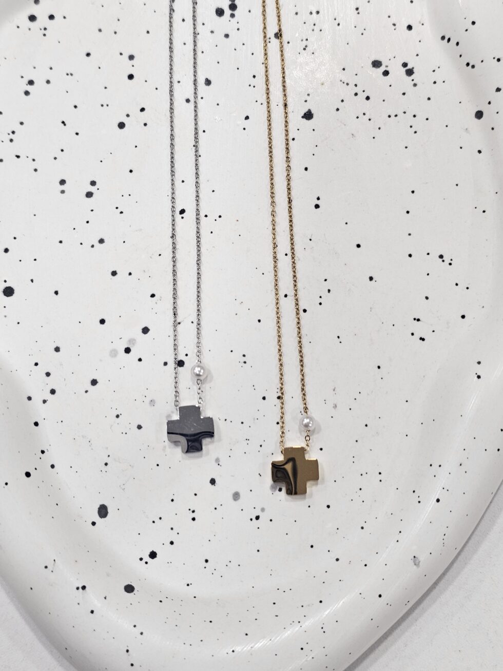 Κολιέ μικρός σταυρός με πέρλα ανοξείδωτο ατσάλι επιπλατινωμένο και επιχρυσωμένο k64