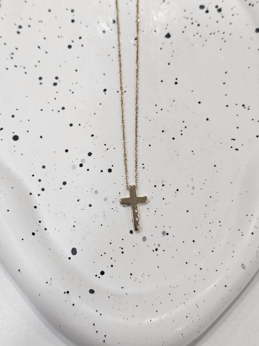 Κολιέ σταυρουδάκι με ζιργκόν ανοξείδωτο ατσάλι επιχρυσωμένο k60