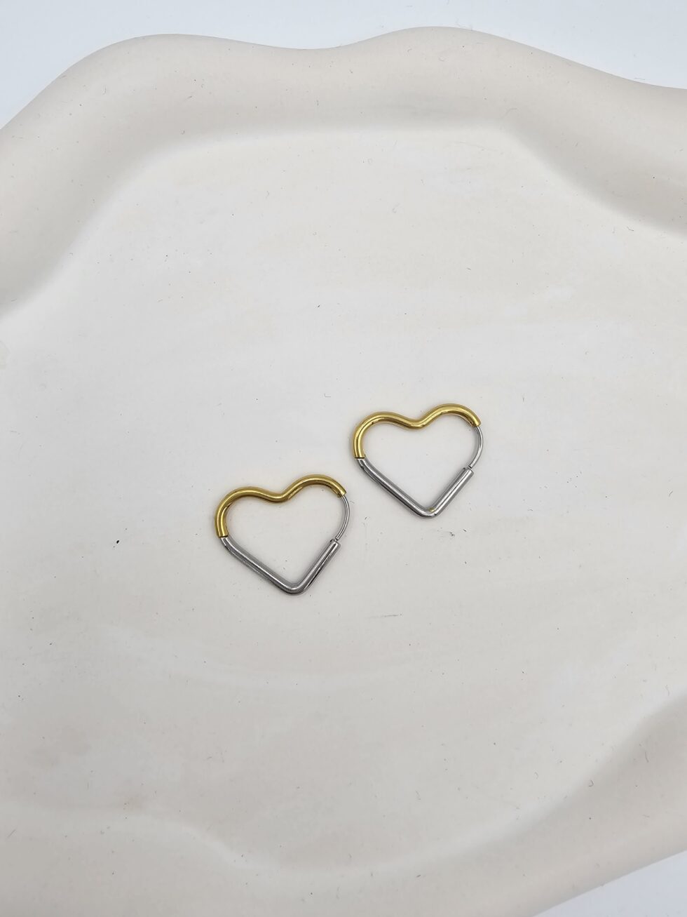 Σκουλαρίκι ανοξείδωτο ατσάλι καρδιά 2×1.7εκ επιπλατινωμένο και επιχρυσωμένο sk88
