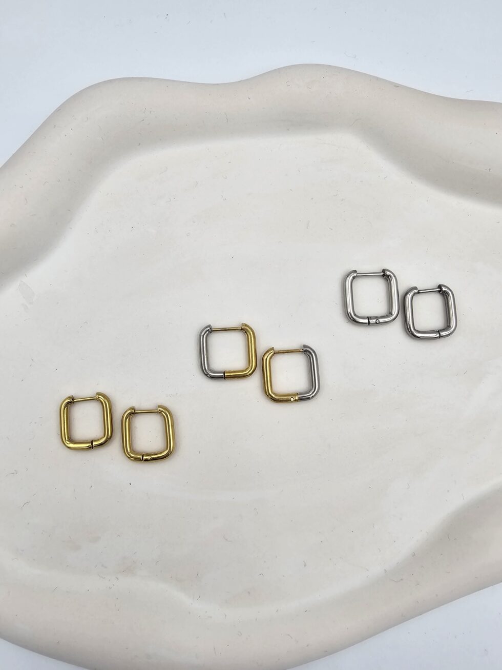 Σκουλαρίκι ανοξείδωτο ατσάλι 1.3χ1.3εκ επιπλατινωμένο και επιχρυσωμένο sk85