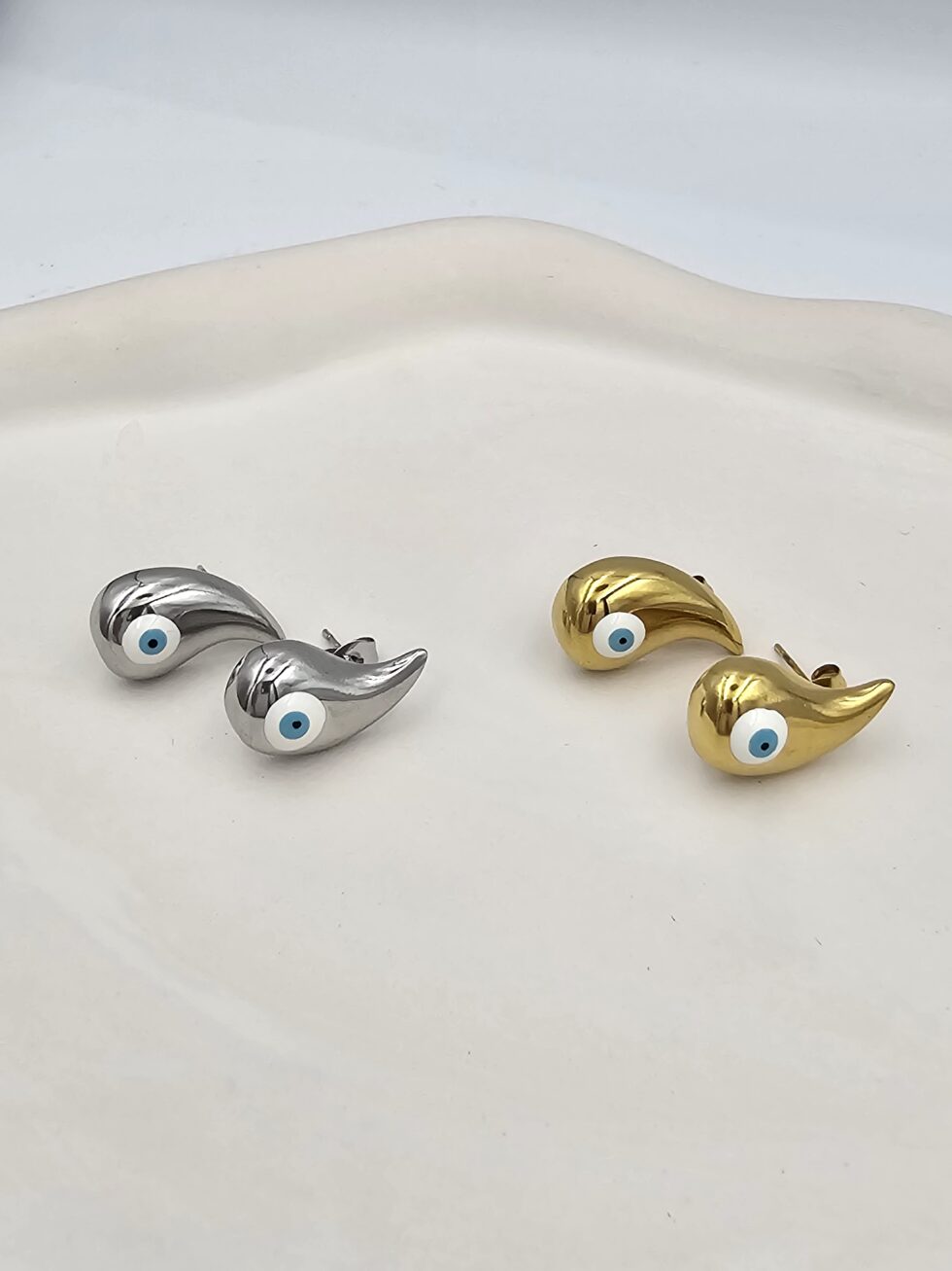 Σκουλαρίκι σταγόνα με μάτι ανοξείδωτο ατσάλι 2εκ επιπλατινωμένο και επιχρυσωμένο sk76