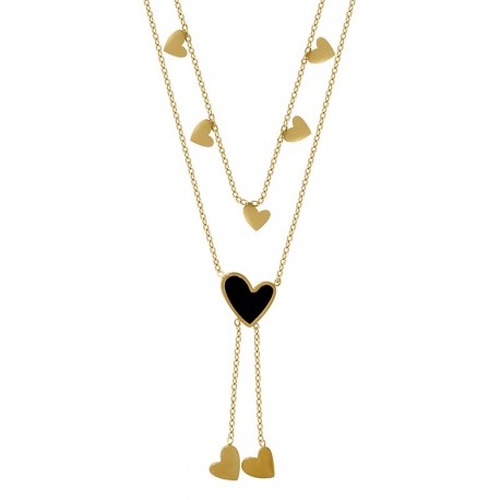 Κολιέ διπλό με καρδιές ανοξείδωτο ατσάλι επιχρυσωμένο k130