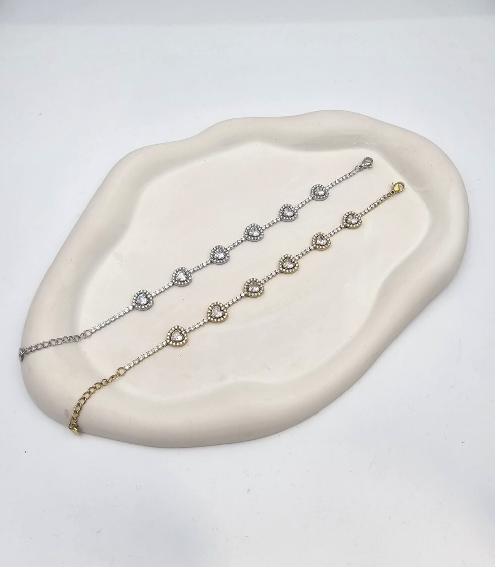 Bραχιόλι καρδίες με στρας ανοξείδωτο ατσάλι επιπλατινωμένο και επιχρυσωμένο v111
