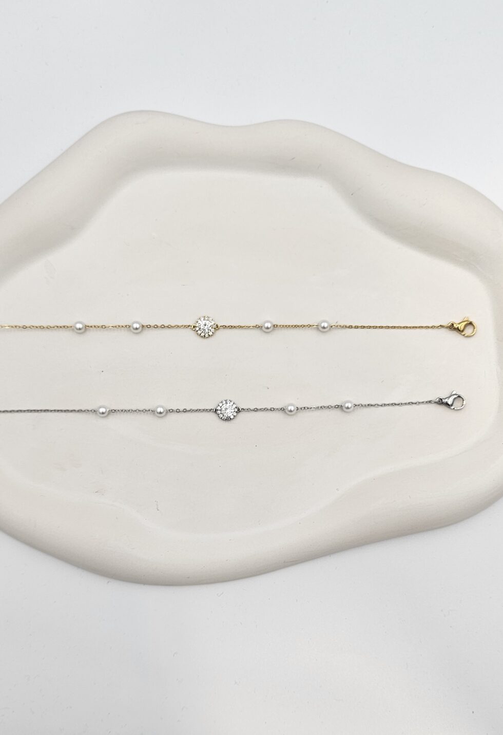 Bραχιόλι με ζιργκόν και πέρλες ανοξείδωτο ατσάλι επιπλατινωμένο και επιχρυσωμένο v108