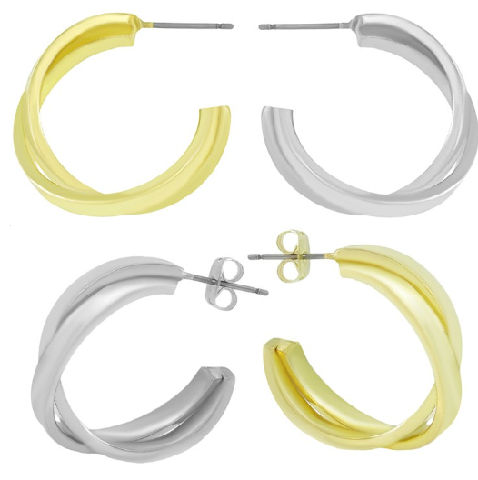 Σκουλαρίκι ορείχαλκος κρίκος 26x10mm επιπλατινωμένο και επιχρυσωμένο sk24