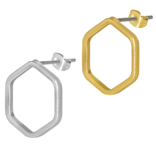 Σκουλαρίκι ορείχαλκος εξάγωνο 13mm επιπλατινωμένο και επιχρυσωμένο sk43