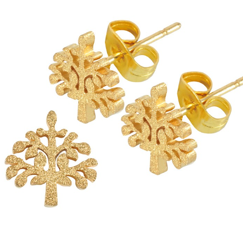 Σκουλαρίκι ανοξείδωτο ατσάλι δέντρο 9mm/8.4mm επιχρυσωμένο sk46